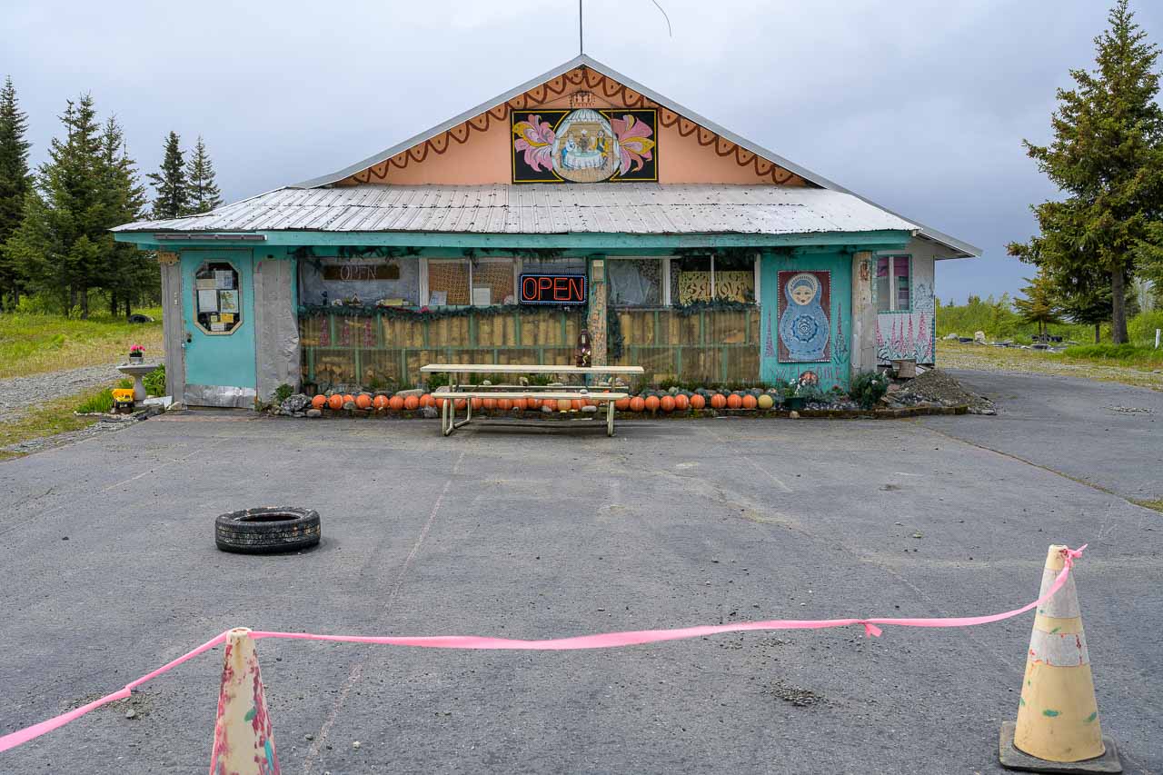 Von Ninilchik fahren wir auf der Suche nach weiteren russischen Spuren über verschlungene Wege nach Nikolaesvk. Im dünn besiedelten Hinterland der Kenai Peninsula gelegen, wurde der Ort erst 1968 von einer Gemeinschaft russisch-orthodoxer Altgläubiger gegründet. Ihnen war damals – mitten im Kalten Krieg – die Ausreise aus der Sowjetunion gelungen.