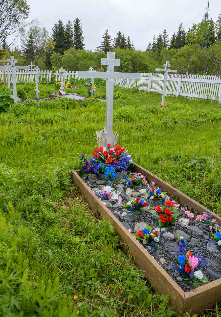 Grab auf dem russisch-orthodoxen Friedhof der altgläubigen Richtung in Nikolaevsk, Alaska, Kenai Peninsula. © Holger Rüdel