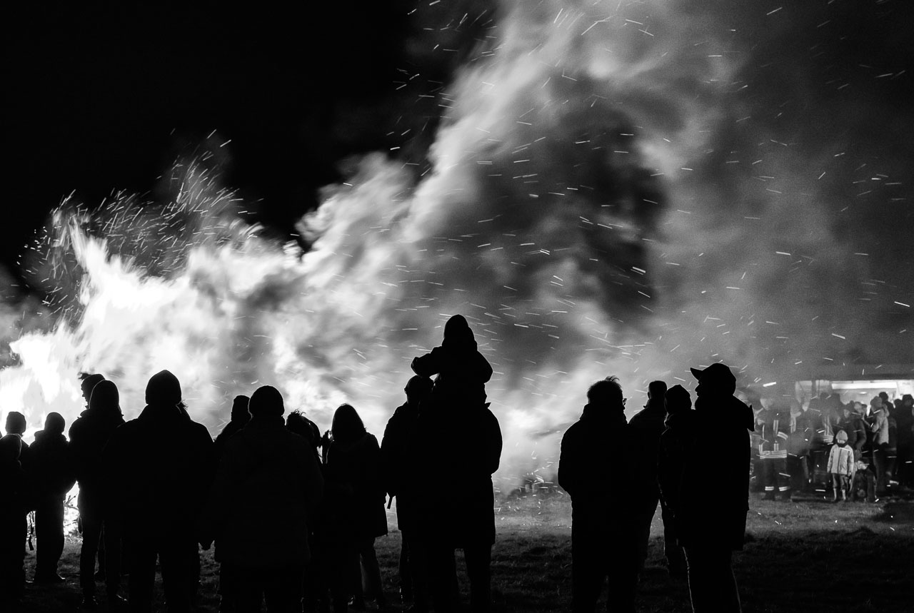 Und doch: Wenn die Flammen steigen, wenn Funken in den Himmel schießen, wenn Rauch und Licht die Nacht durchdringen, wird das Ritual archaisch.