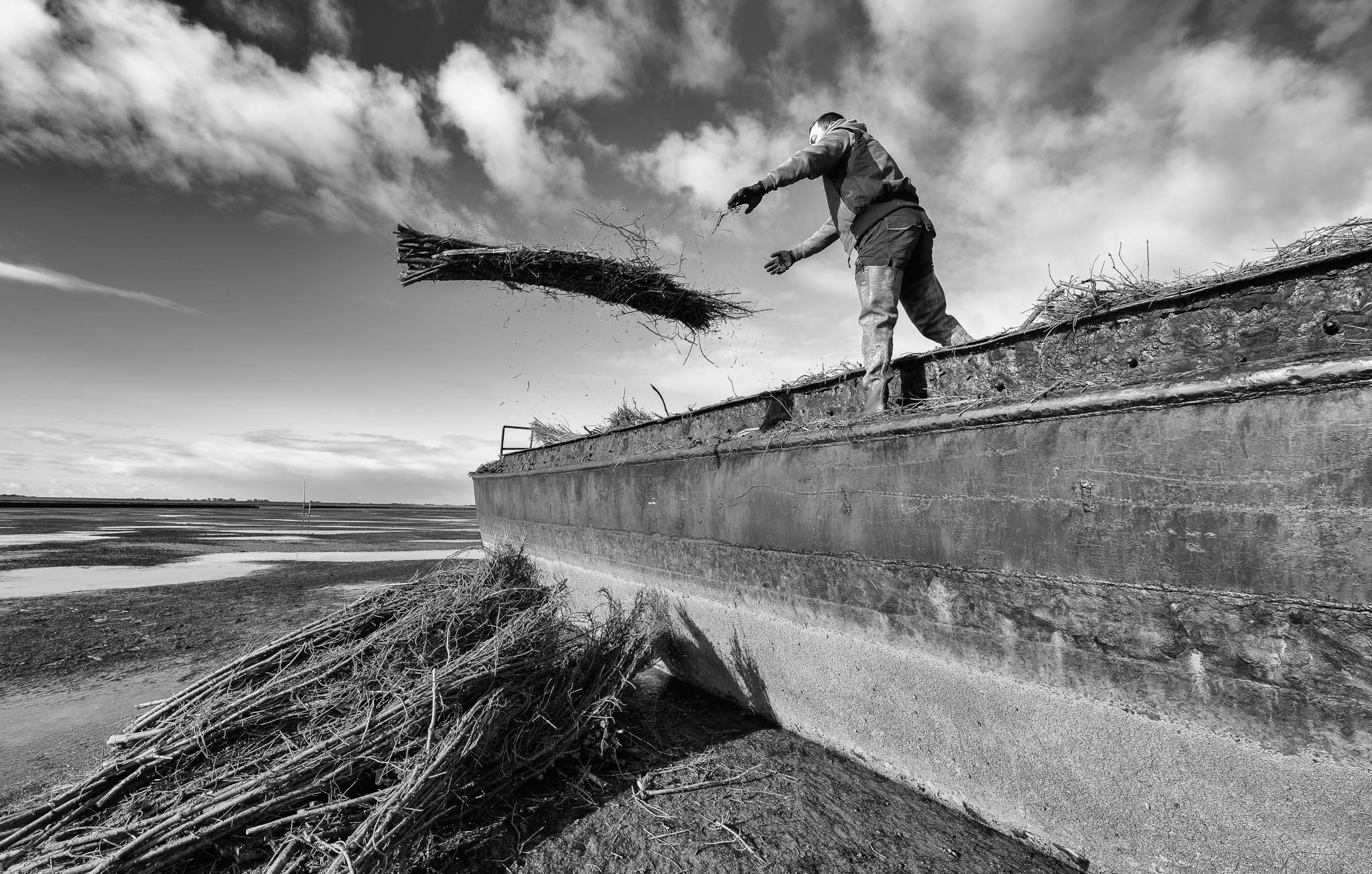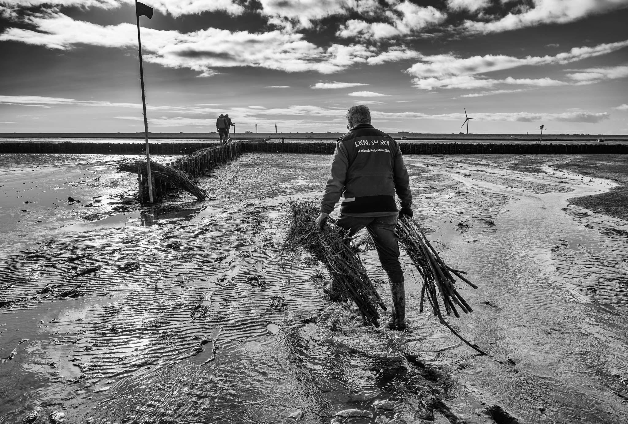 Die Serie ist Teil meines langfristigen Projekts Gezeitenwechsel – Nordfriesland und das Meer. Die Lahnungsarbeiten fügen sich darin als ein Kapitel ein, das zeigt, wie eng Küstenschutz, Handwerk und Verantwortung miteinander verbunden sind – und wie viel menschliche Beharrlichkeit nötig ist, um eine Landschaft zu stabilisieren, die sich mit jeder Tide neu formt.